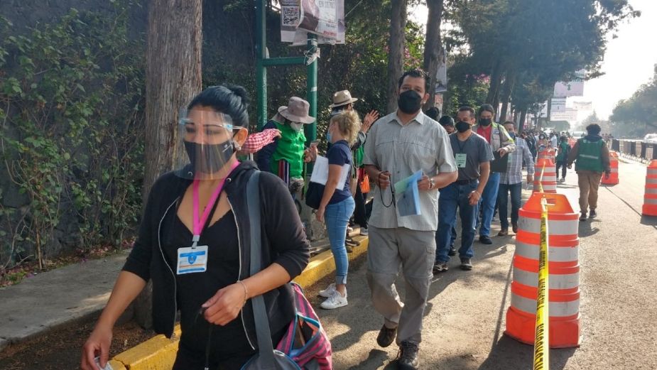 En un recorrido por el macrocentro del Centro de Exposiciones de Ciudad Universitaria de la UNAM, en la alcaldía Coyoacán, se observó una afluencia constante de personas que acuden a ser inmunizados contra el coronavirus.
