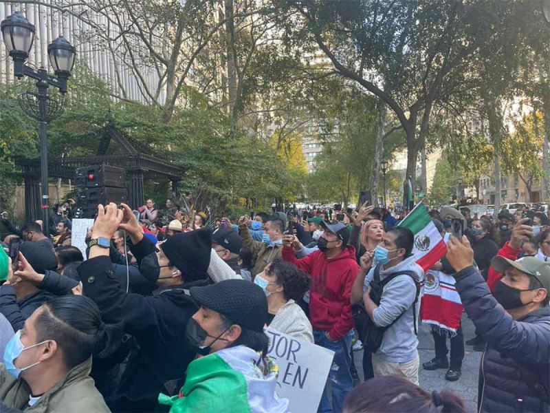 Los paisanos están afuera de la sede de las Naciones Unidas en la ciudad de Nueva York donde llegó el mandatario mexicano la noche de este lunes 8 de noviembre.