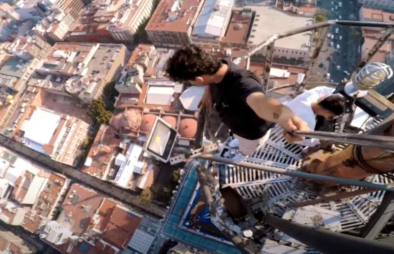 Poco a poco, Serledios Ph comenzó a escalar la Torre, pero decidió ir más allá. En la grabación se observa como sube unas escaleras y luego unos tubos para llegar hasta la antena del edificio.