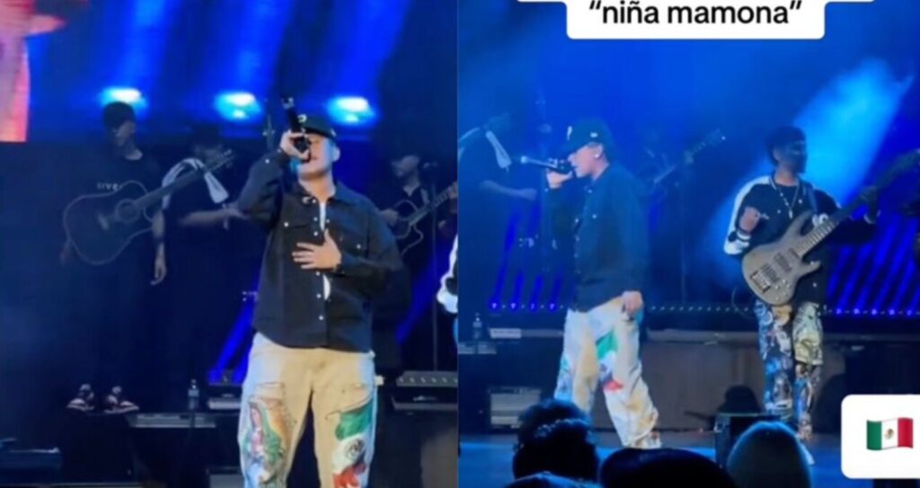 En un video se ve a la cantante Yahritza arriba del escenario junto a Natanael Cano y usando los pantalones de la Virgen.