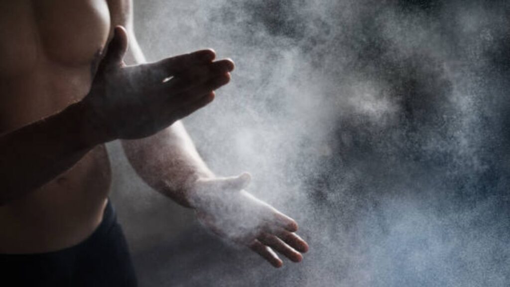 Antes de realizar su golpe deben de empolvar su mano con arena blanca de carbonato de magnesio, para que las manos estén secas y el golpe sea sólido.