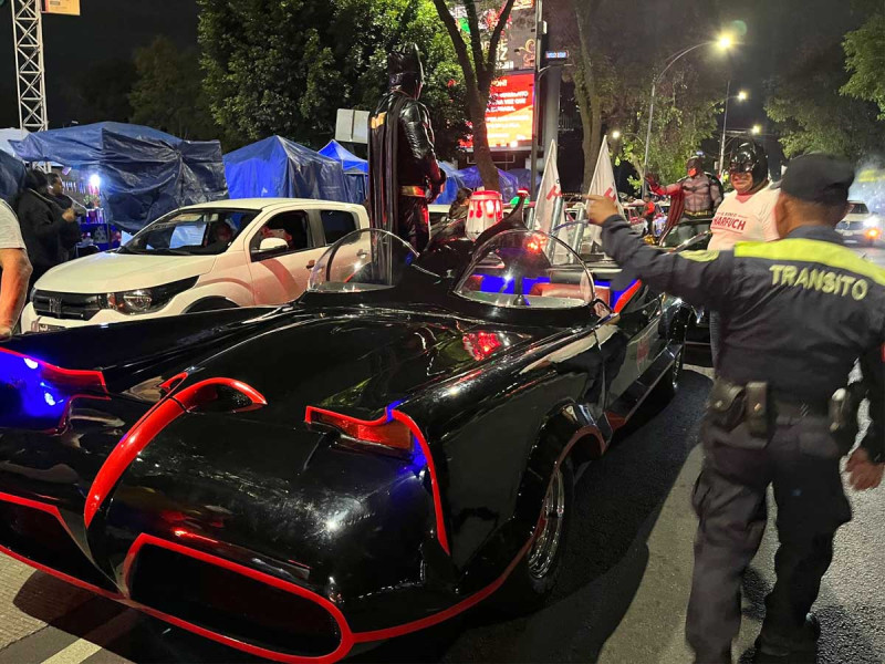 En el Monumento a la Revolución se reunieron más de 30 vehículos, dos convertibles y un batimóvil para recorrer las calles en apoyo al ex secretario de Seguridad Ciudadana.