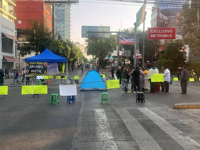 Vecinos de nueve colonias pasaron la noche en bloqueo y con casas de campaña, en el cruce de las avenidas Insurgentes y Xola en la alcaldía Benito Juárez de la Ciudad de México.