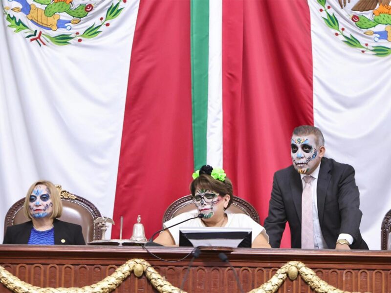 Los integrantes de la Mesa Directiva del Congreso de la Ciudad de México se sumaron a las festividades de Día de Muertos al sesionar caracterizados con maquillaje tradicional. Entre ellos, la presidenta Martha Ávila destacó con su caracterización de Catrina, mientras que Olivia Garza, vicepresidenta y miembro del PAN, lució maquillaje con detalles en tonos azules.